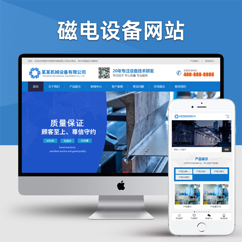 (自适应手机端)HTML5响应式磁电设备网站pbootcms模板 蓝色营销型机械设备网站源码下载