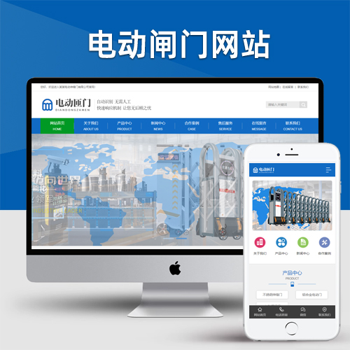 (PC+WAP)电动闸门伸缩门类网站pbootcms模板 蓝色自动伸缩门网站源码下载